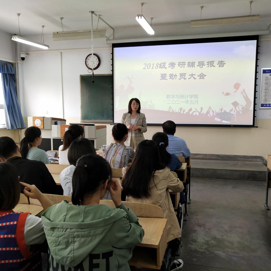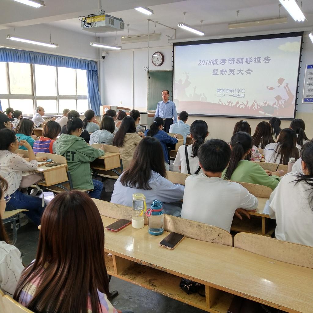 为深入开展“为师生办实事”,进一步帮助员工了解更多考研信息,掌握考研技巧,5月13日,数学与统计公司举行2018级考研辅导报告暨动员大会,邀请公司朱睦正、刘群两位博士作专题辅导报告。公司领导、2018级班主任、辅导员及数学181全体同学参加了报告会。