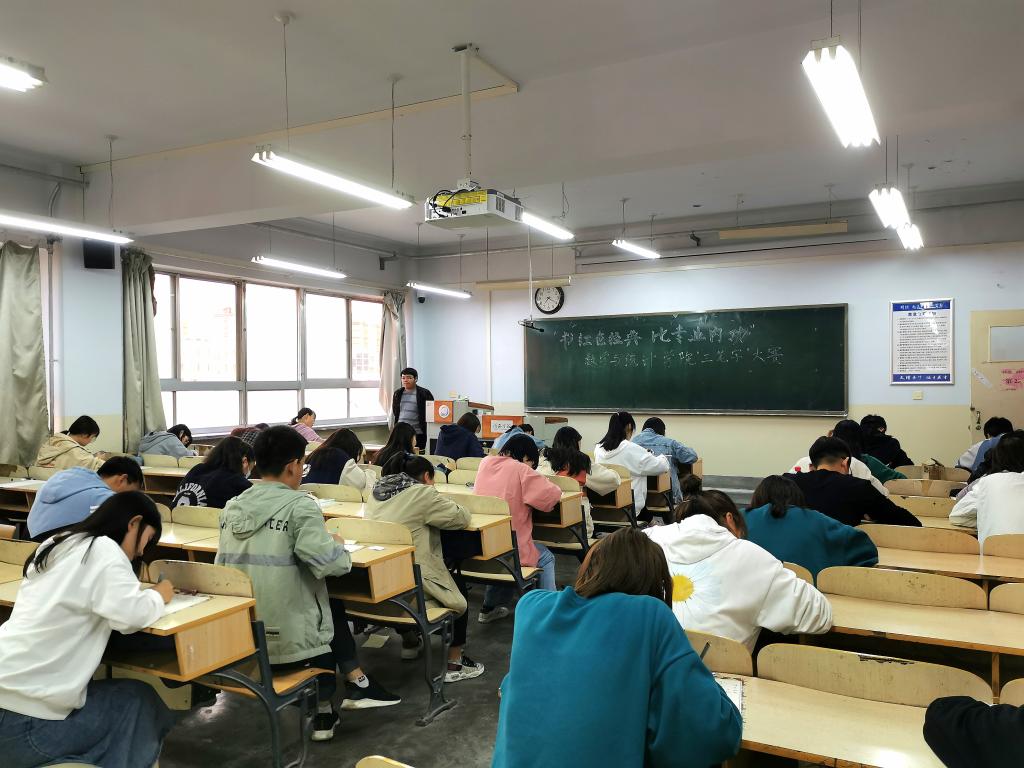 本次大赛各设一等奖1名,二等奖2人,三等奖3人,共有64名选手报名参加。为保证本次大赛的公平公正公开,本次大赛采用匿名评比办法,选手抽签进行比赛,并以签号代替署名。选手们热情饱满,胸有成竹,均在规定时间内完成了作品。比赛结束后,指定专人负责作品影像采集,并交由评委教师进行评分。最终成绩将在第十届“数学文化节”闭幕式前公布。